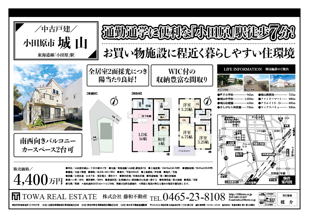 値下げ物件情報 小田原市城山1丁目 中古戸建