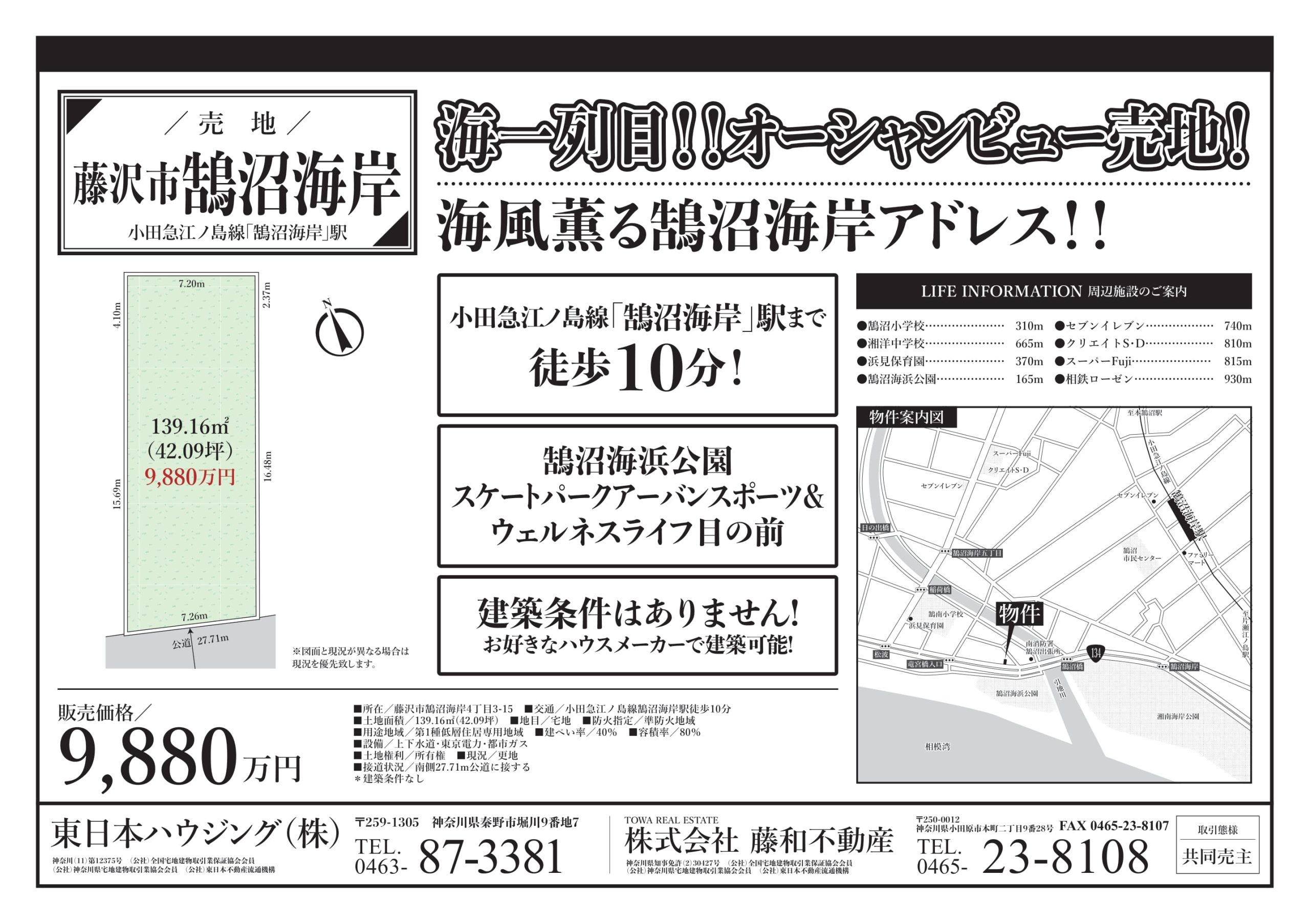 12月13日に 値下げ物件情報 藤沢市鵠沼海岸4丁目 売地 の情報を更新いたしました。