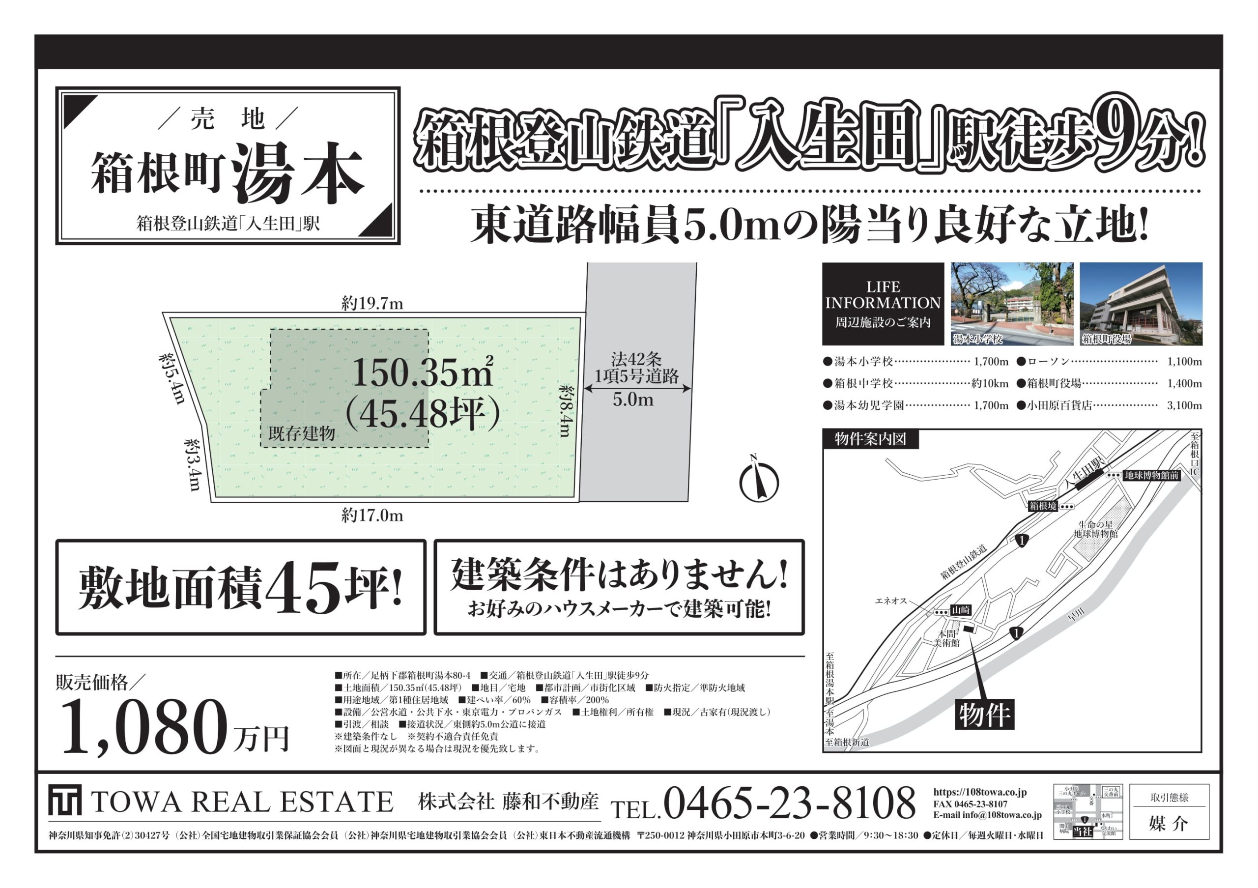 【箱根町湯本(古家付き)土地 物件詳細ページ】