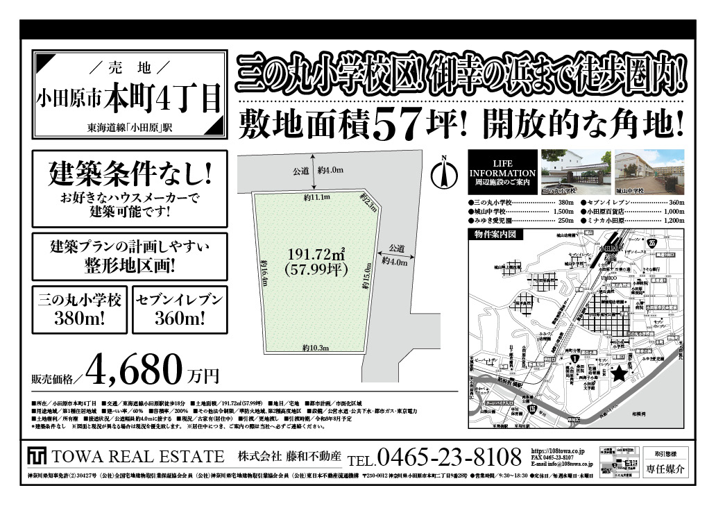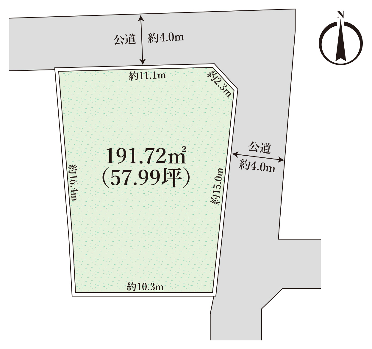 北側幅員約4.0m、東側幅員約4.0m公道に接する